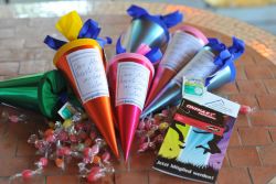 Auch in diesem Jahr wieder das sympathische Abschiedsgeschenk des Vereins: Die „Pindlfreunde-Schultüten“ mit Süßigkeiten, Cinemaxx-Gutscheinen und Aspirintabletten!